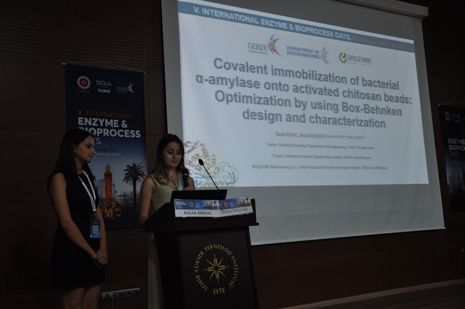 Başak Birdal ve Beyza Bahçıvan, "Covalent immobilization of bacterial α-amylase onto activated chitosan beads: Optimization by using Box-Behnken design and characterization" başlıklı sözlü sunumlarını başarıyla gerçekleştirdiler.